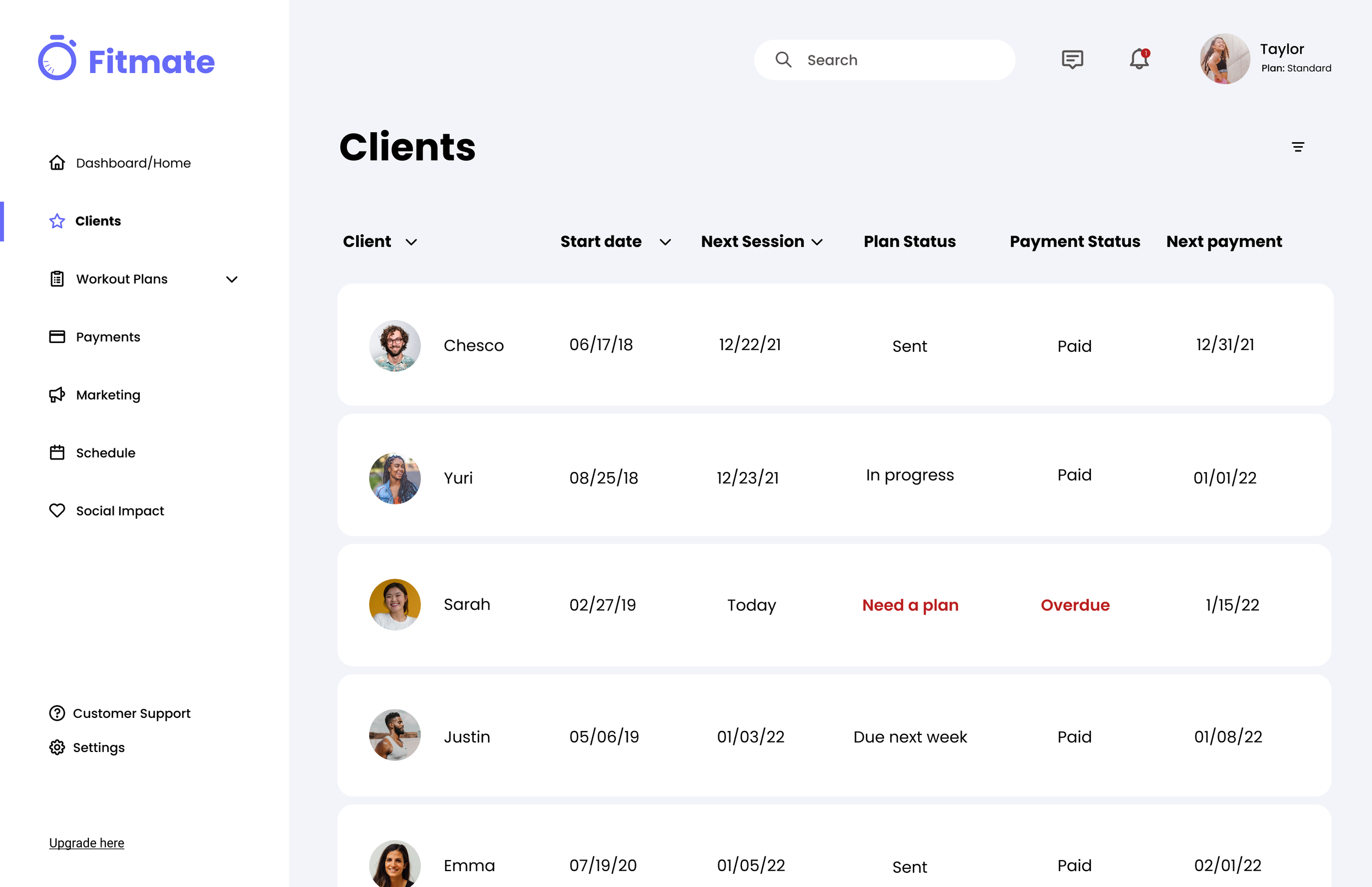We designed a hierarchical dashboard that prioritized urgency and visibility. Critical signals such as expiring plans or payment issues surfaced first, while secondary tasks remained accessible but unobtrusive. This reduced context switching and allowed trainers to operate from a single source of truth.