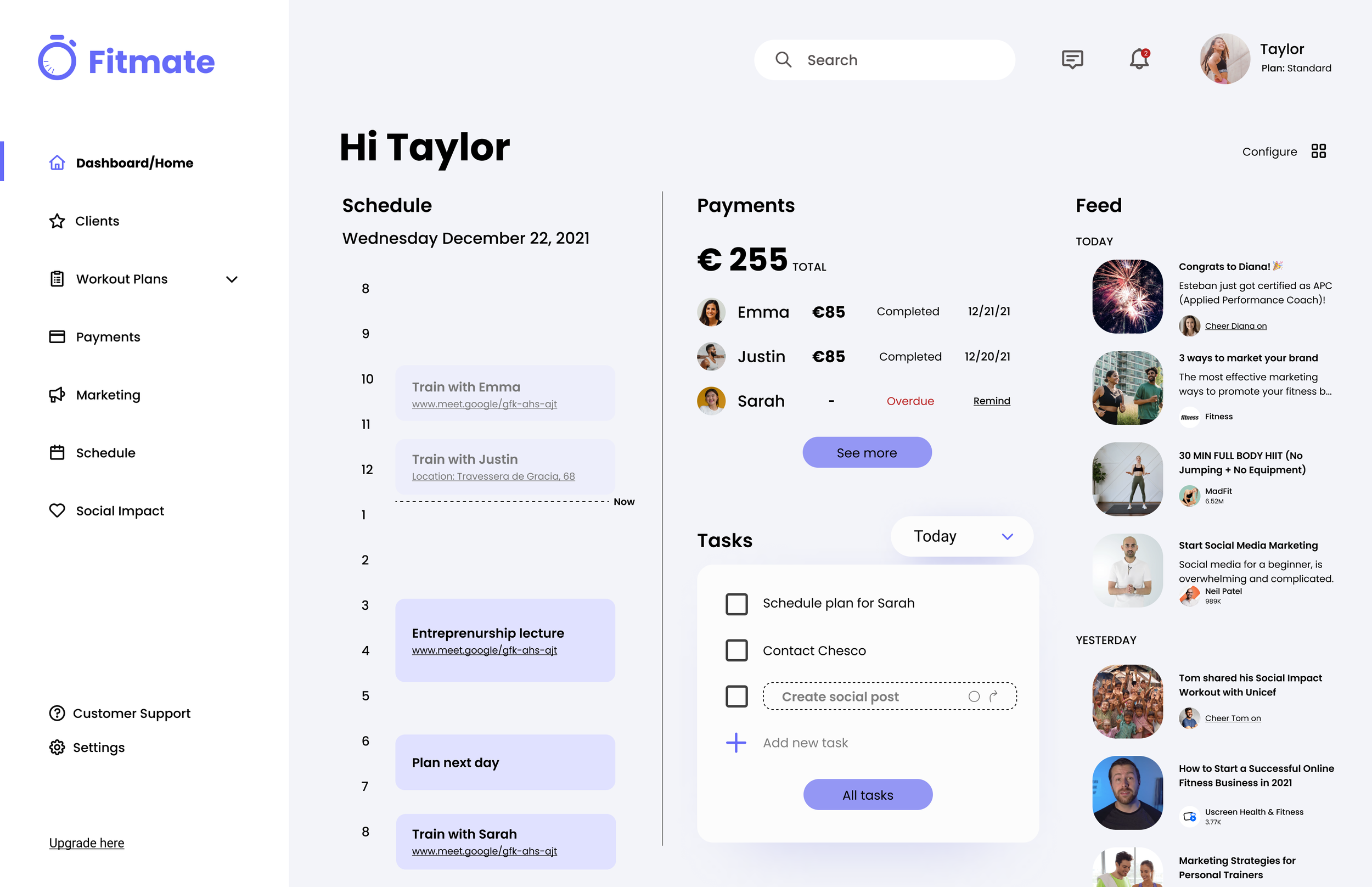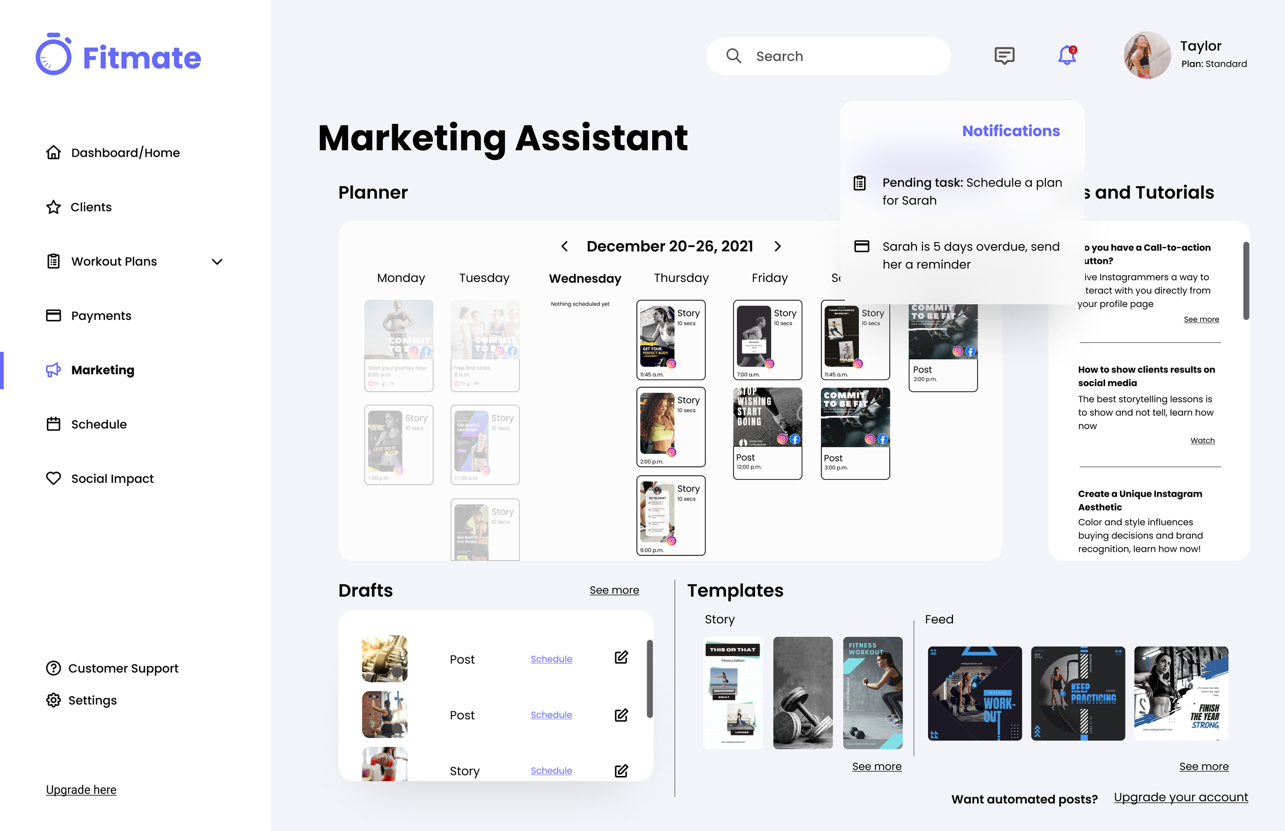 Fitmate replaces fragmented admin tools with an AI-assisted operating system for independent trainers. By proactively prompting plan updates, suggesting programming based on client data, supporting marketing cadence, and flagging payment risks before they escalate, the system transforms reactive administrative work into structured, intelligent workflows. Trainers can focus on client relationships and scale their business with confidence.